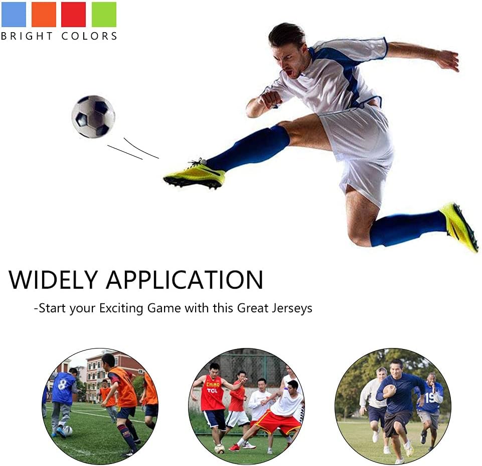 [Breathable & Comfortable] Crafted from polyester material, these training vests ensure maximum ventilation to keep you cool and comfortable during intense workouts. the breathable fabric promotes airflow, making it ideal for running, training, and team sports. [Versatile for Team Sports] This 12-pack set of jerseys is great for a variety of team sports, including football, soccer, basketball, and volleyball. the lightweight and breathable design make them an essential accessory for training sessions and competitive games. [Elastic Strap for Freedom of Movement] Designed with elastic straps on both sides, these football training vests allow for unrestricted movement, ensuring flexibility during play. the adjustable fit accommodates adults weighing 140lb, providing a snug yet comfortable experience. Specifications: Material: Polyester Color: Blue Size: Approx. 66 x 50cm/26 x 19.7in Weight: Approx. 95g / pc Quantity: 12pcs Package List: 12 x Football Jerseys Note: Please note that the size chart is for reference only. Due to factors such as manual measurement and fabric elasticity, there will be an error of about 3CM, which is within a reasonable range.