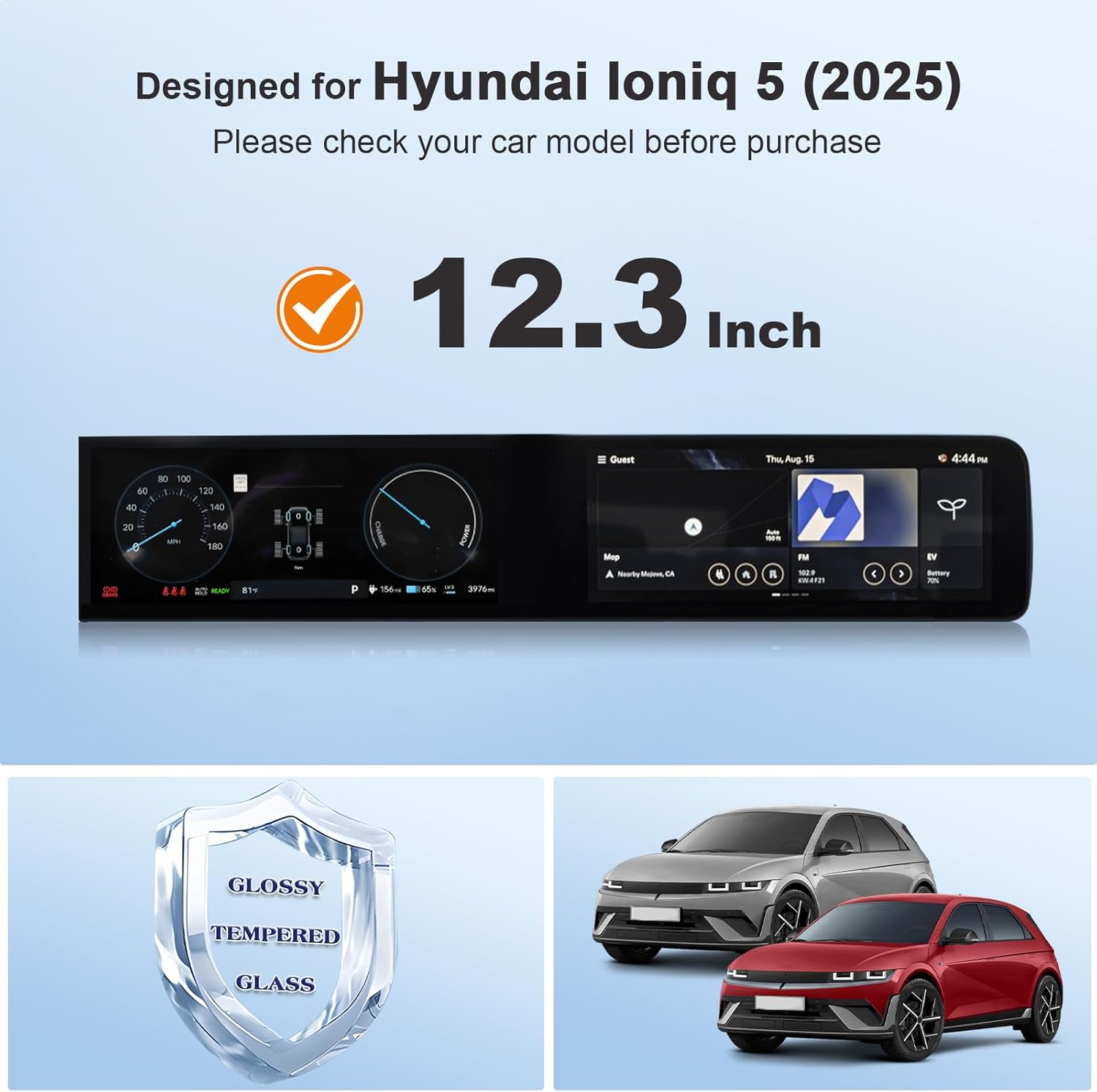 | Model Name | for 2025 Hyundai Ioniq 5 Dual 12.3-inch Digital Displays Screen Protector |