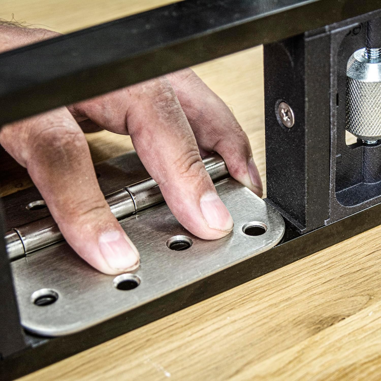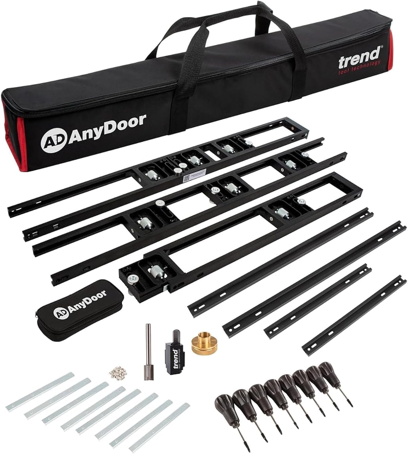 The Trend Ultimate Door Installation Kit is the ideal solution for precise and efficient door fitting. This all-in-one package includes the 9ft AnyDoor Butt Hinge Template Jig, T1 Dual-Base Router with a ¼" collet, Foot-Operated Door Lifter, Door Stand, and a Professional Two-Flute Router Bit. The adjustable jig accommodates all hinge sizes and door heights, ensuring perfect alignment for both new installations and replacements. The T1 Router delivers versatile plunge and trim cutting for hinge recessing, edge trimming, and intricate woodworking. The foot-operated lifter enables hands-free positioning, while the secure door stand keeps the door steady for precise routing. Designed for both professional tradespeople and DIY users, this kit ensures accurate, reliable, and efficient door installation every time.